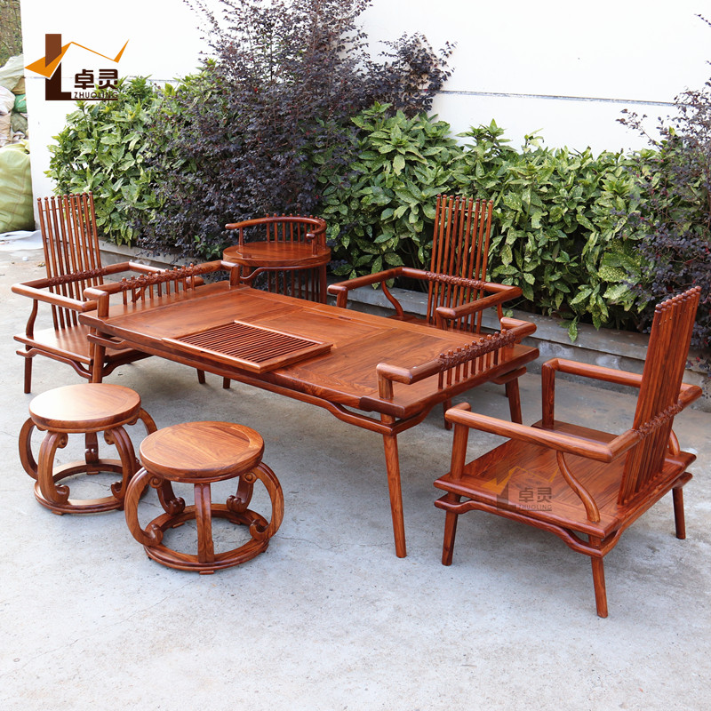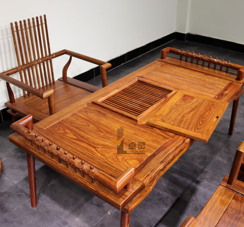 Redwood Hedgehogang Table Tea Table Chair Kyocera Flower Wood Kung Fu Tea Stand Soyuo New Chinese All-solid Wood Furniture