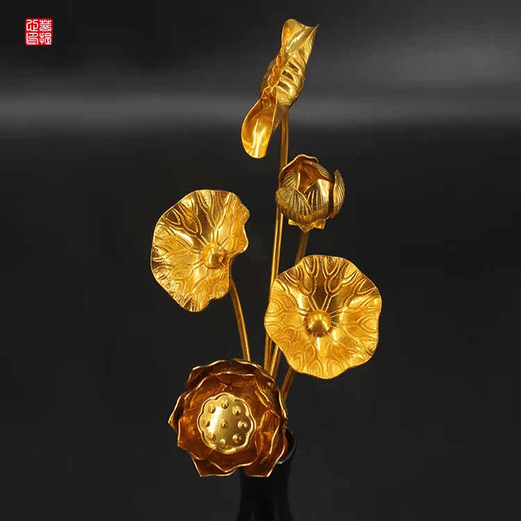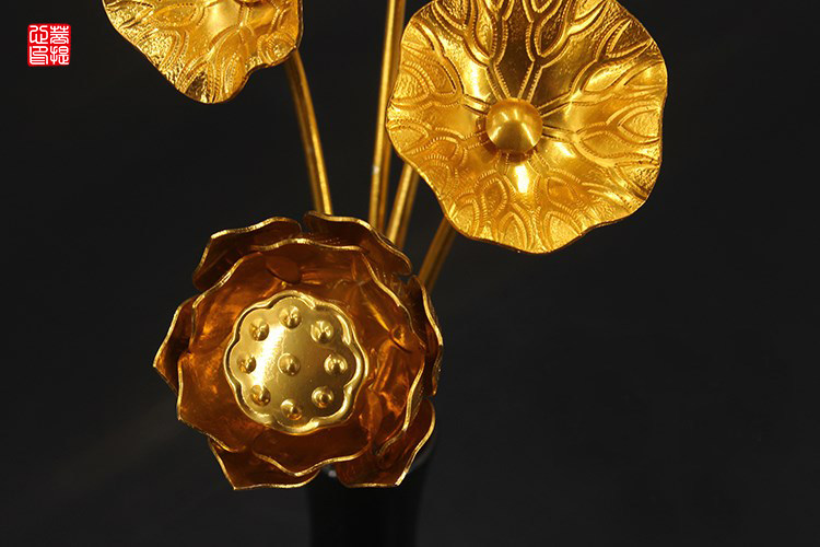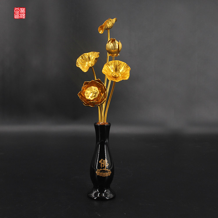 Ceramic vase Japanese style Golden Lotus 5 bundles for the Buddha in front of a flower for flowers and flowers