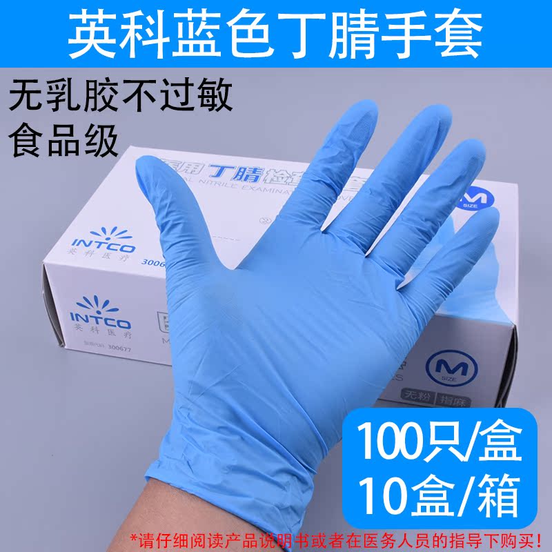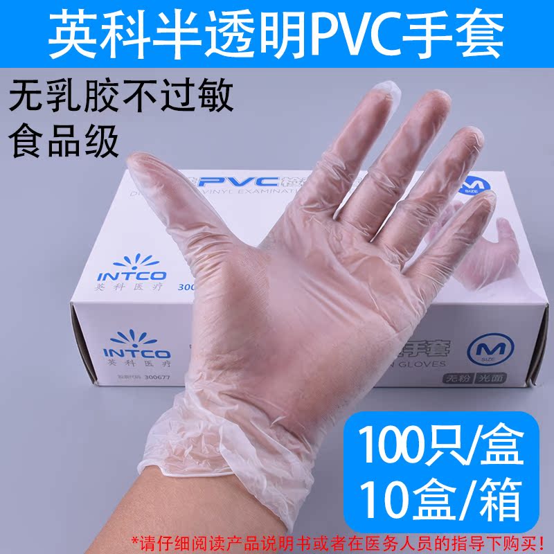 INTCO Inco disposable PVC nitrile gloves food grade processing checkkitchen housework baking transparent blue