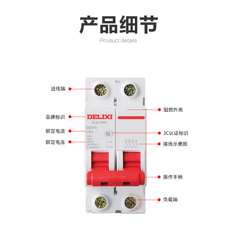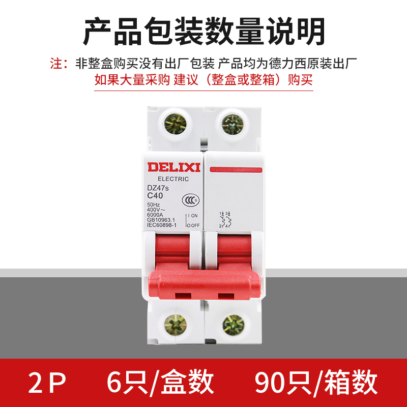 Delixi DZ47S circuit breaker 2p household air switch 16A single phase 32a63a double-horse open 100a Electrical