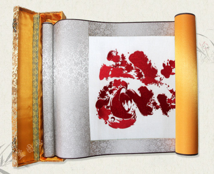 Han embroidery boutique blessing character gift decorative painting classical calligraphy and painting scroll soft mounted pure handmade embroidery painting craft gift decoration finished product