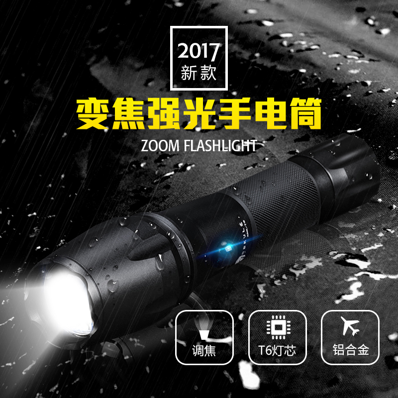 Intense light flashlight charging LED ultra-bright zoom small searchlight Home multifunction outdoor anti-body waterproof 3000