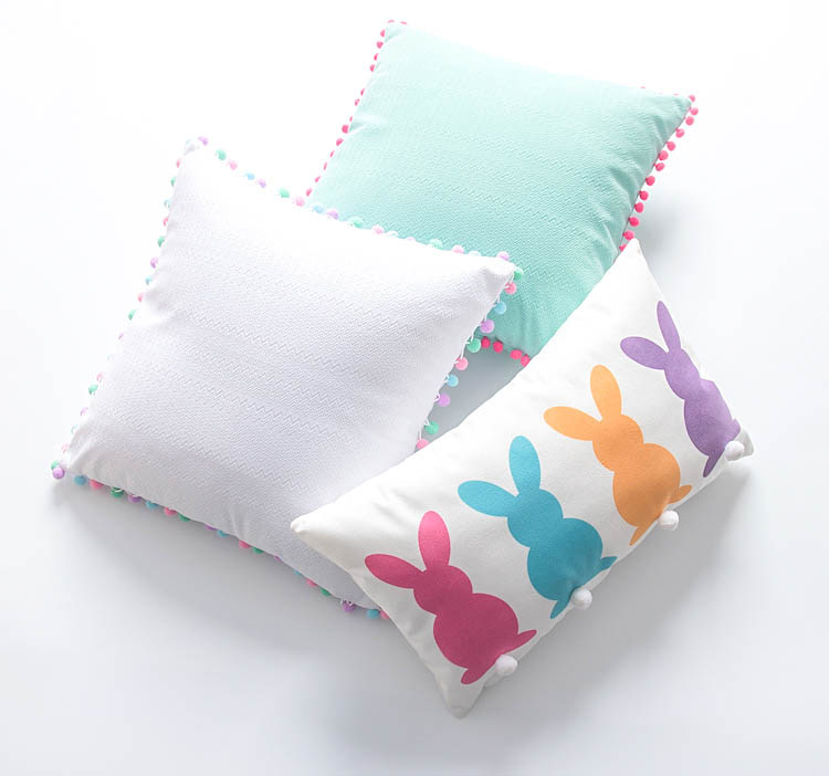 Velvet pillow ins wind rabbit pillow sofa bed cute ball girl heart solid color children's room cushion