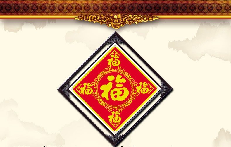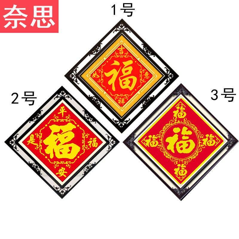 Fu character cross stitch 2022 new thread embroidery beginners small living room hanging painting Chinese style series 2021 own embroidery