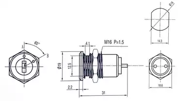 Key switch power lock control switch metal key switch 735 switch drilling 16mm 2 feet