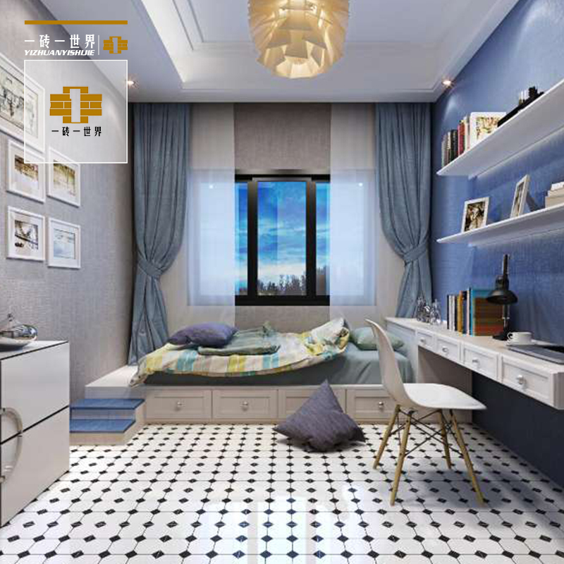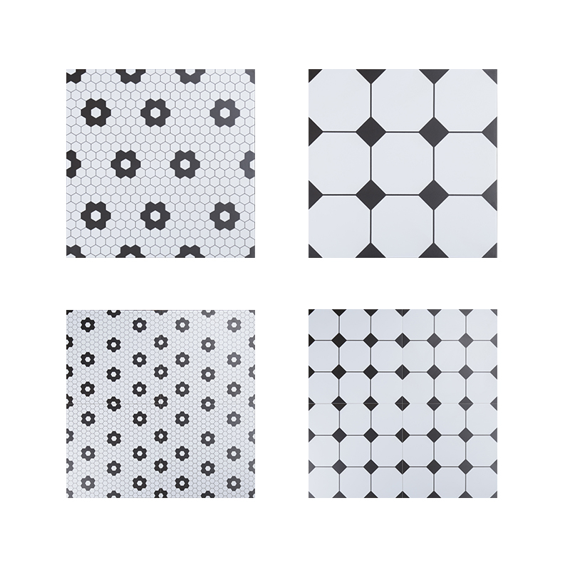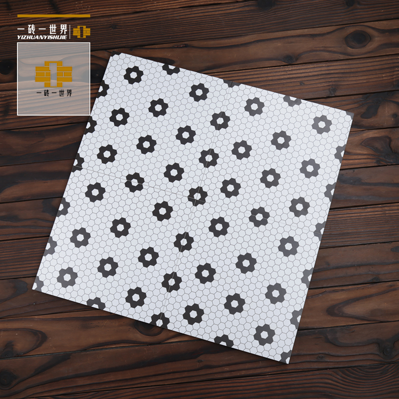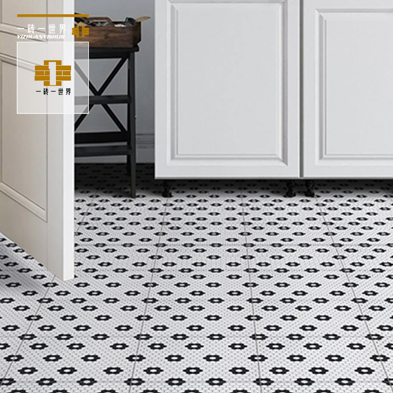 Nordic large octagonal powder room ceramic mosaic tile stickers black and white European bathroom kitchen non-slip floor tiles
