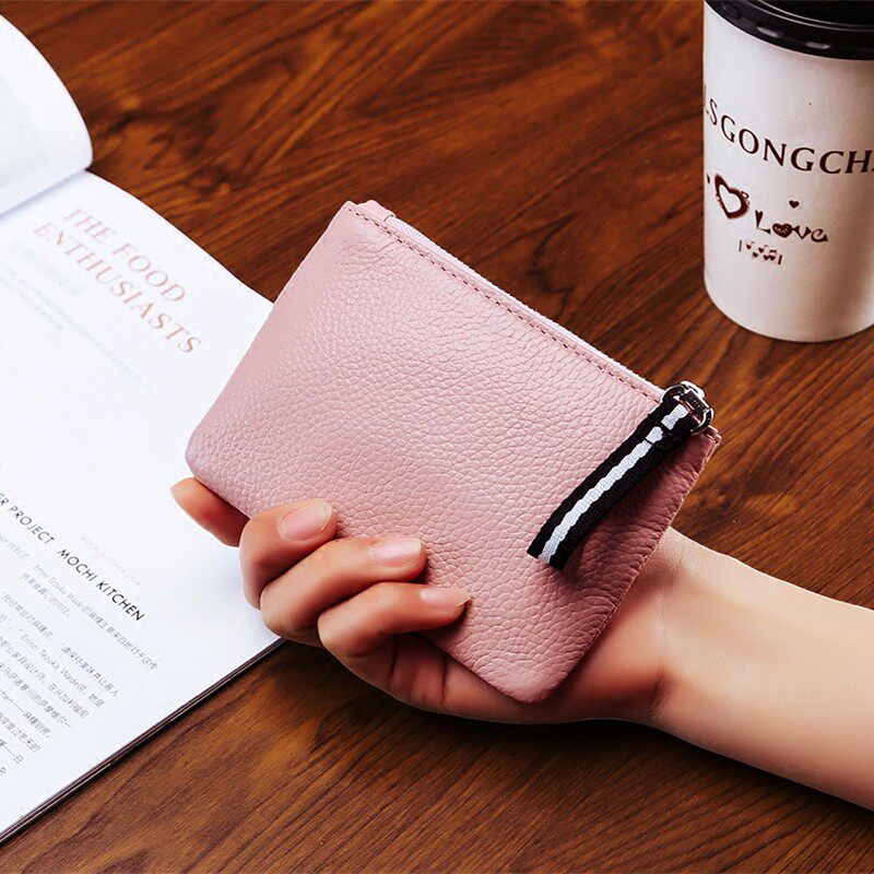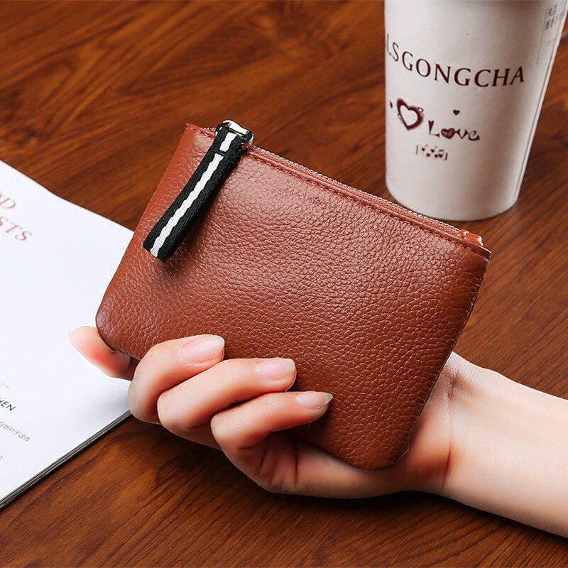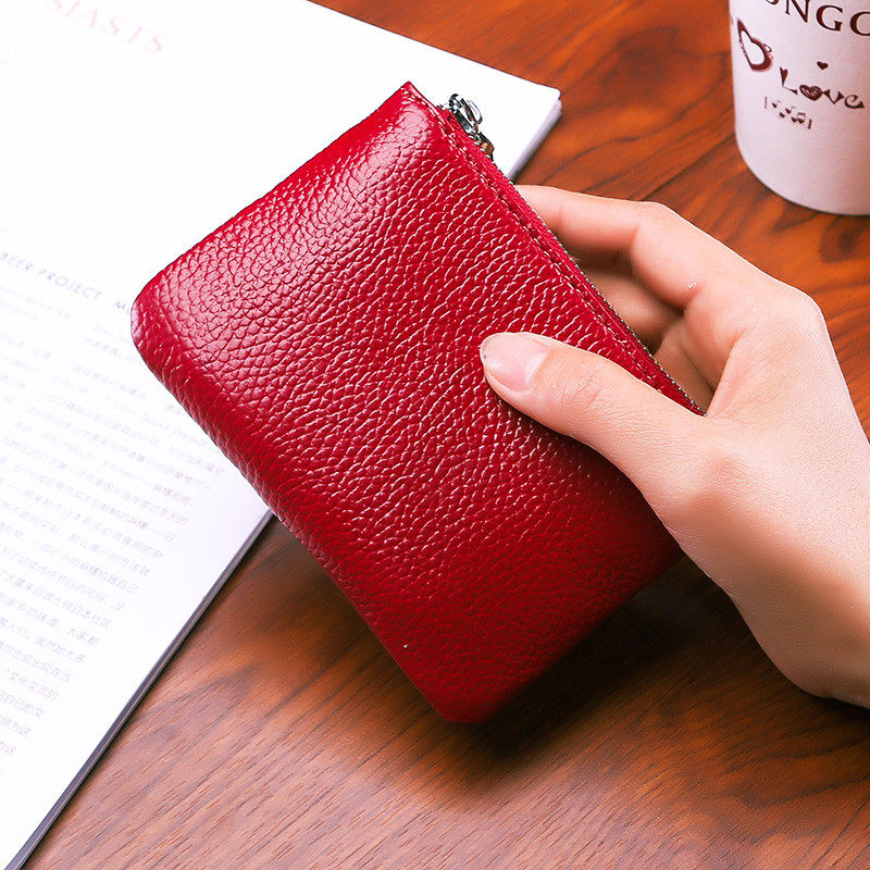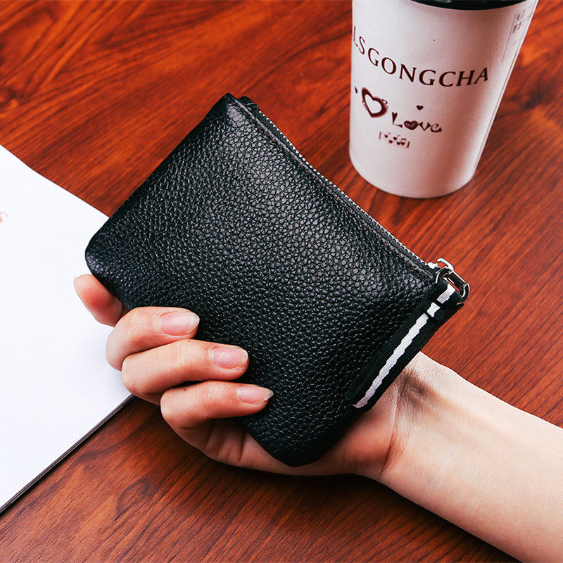 First layer leather mini coin purse coin bag female leather small wallet short zipper card key bag male