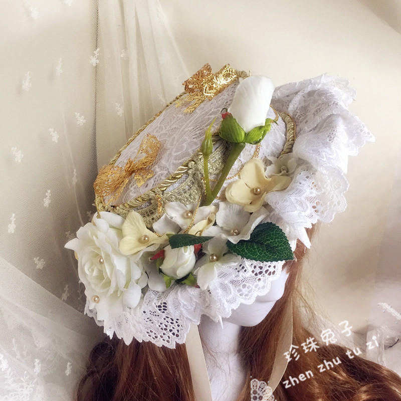 "Pearl Rabbit" guest single original lolita hand for gorgeous lace flat top courtesy hat and dead Crown Princess Little Things