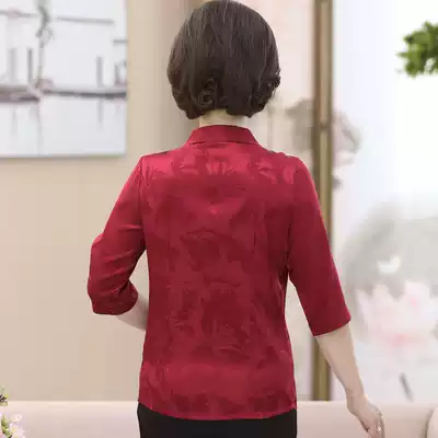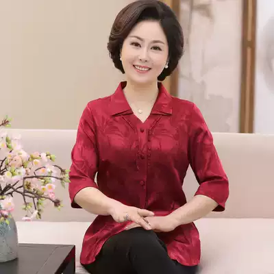 Silk silk middle-aged women's clothing three-point sleeve shirt top Long-sleeved mulberry silk mom dress summer dress grandmother dress