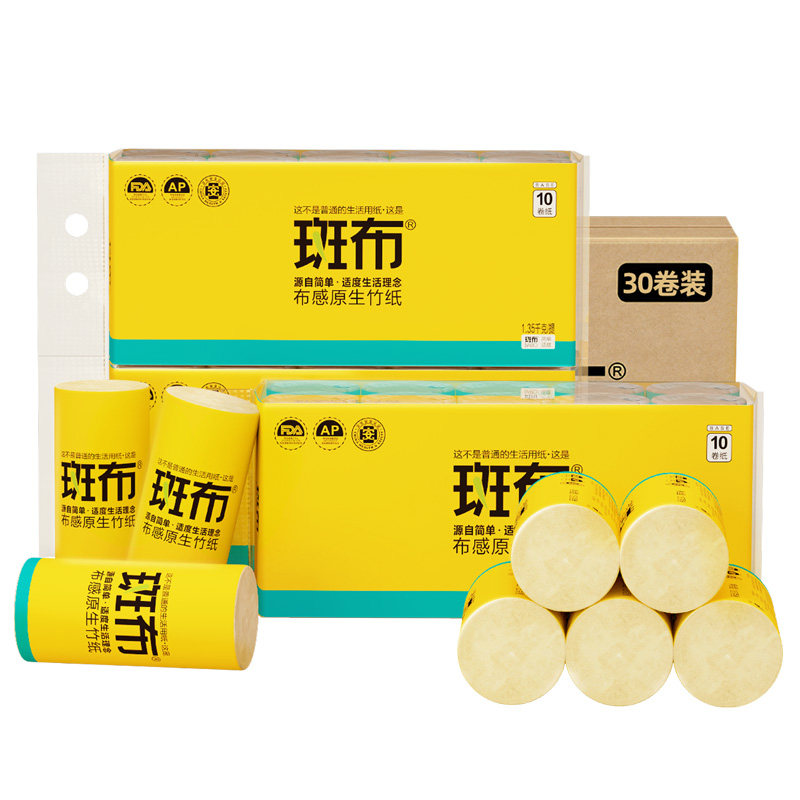 Spotted cloth BABO coreless roll toilet paper Bamboo fiber non-fluorescent toilet paper towel household affordable pack 135 grams 30 rolls full carton