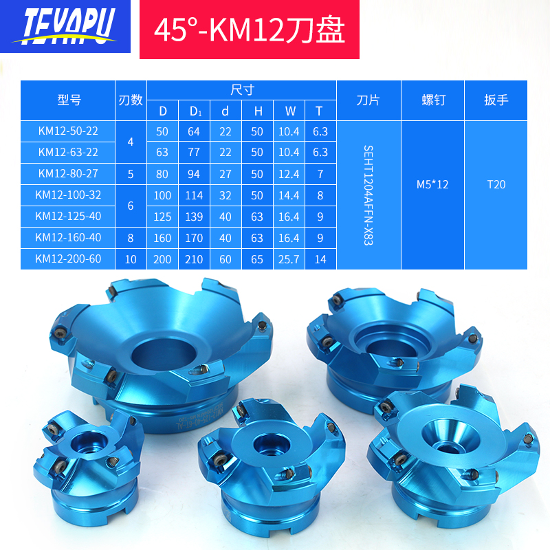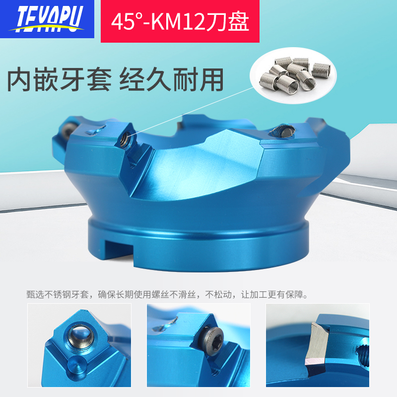 TEYAPU aluminum cutter head 45 degrees lightweight high-speed cutting face milling cutter KM aluminum alloy cutter head KM12 aluminum use disk