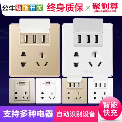 Bull switch socket 5 five-hole panel concealed with USB multi-port wall power supply Household charging 86 type wall plug