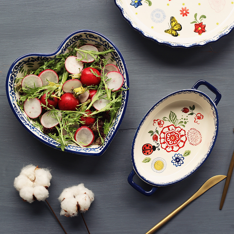 Butterfly Romance Flower glazed ceramic Rectangular Dish Baking Pan Cheese Baking Pan Oven with Baking Rice Bowl plate Home