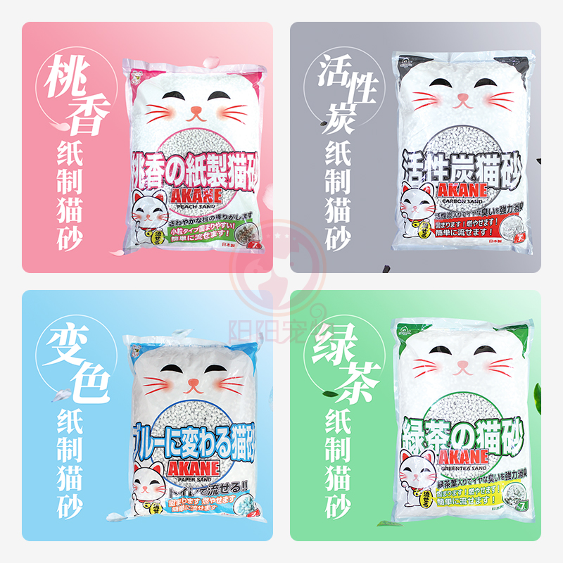 Japan AKANE cat litter Activated carbon peach fragrant green tea blue four paper sand agglomeration Cat litter 7L flushable toilet