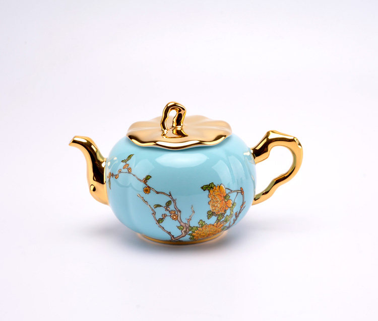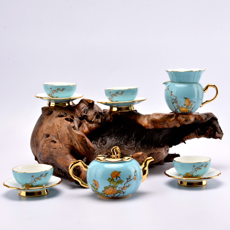 Yongfengyuan Tea Set Lady Porcelain West Lake Blue 12 Heads Tea Set Tea Leaker Teapot Tea Cup 4 Persons Set Gift Box