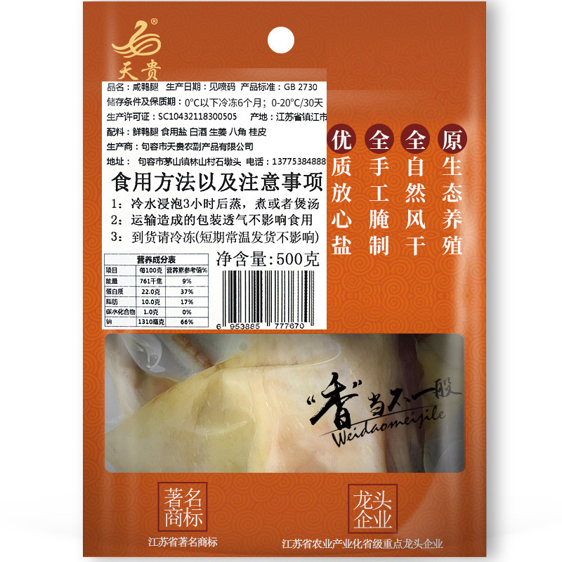 Sky Guido duck leg salted duck leg farmhouse homemade Dried Duck Leg Meat 500g Vacuum Laker Smell Salty Meat year stock