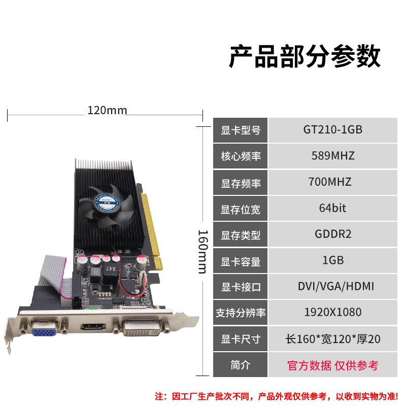 Huazhi's new GT210 GT610 1G 2G DDR2 display small host shell semi-height screen graphics card for 2 years