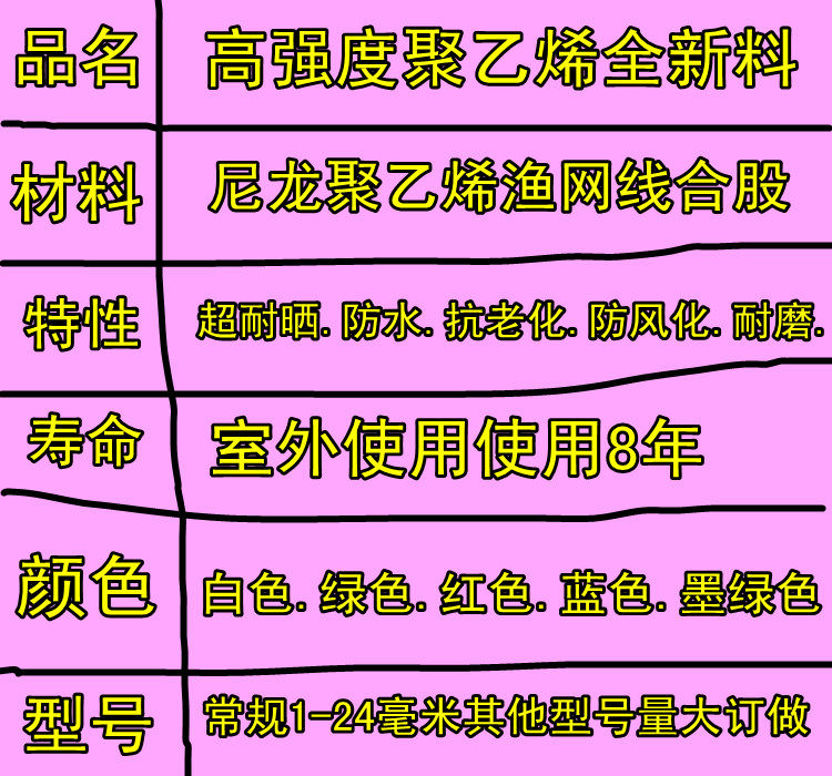 Red 1.5 mm polyethylene rope nylon rope greenhouse rope construction rope rope climbing rattan rope plastic mesh mesh rope