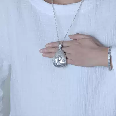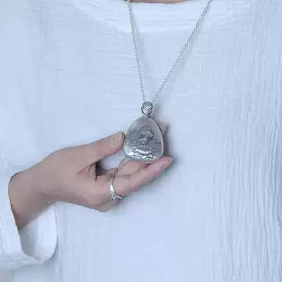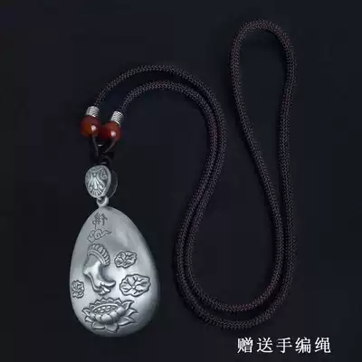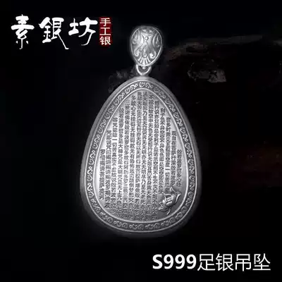 S999 Foot Silver Heart Sutra Oval Large Pendant Sweater Pendant Safe and Satisfied Bergamot Taiyin Do Old Sweater Chain Pendant