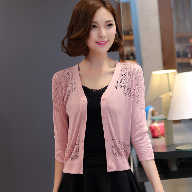 Knitted cardigan thin jacket spring and summer new autumn short sweater hollow out small shawl sunscreen shirt