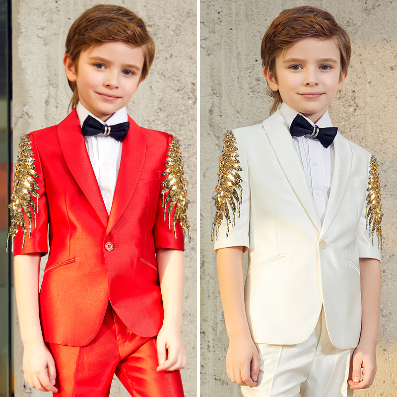 Children's suit suit boy Western-style piano walking show to serve Inlan floral gown to host acting short sleeve summer