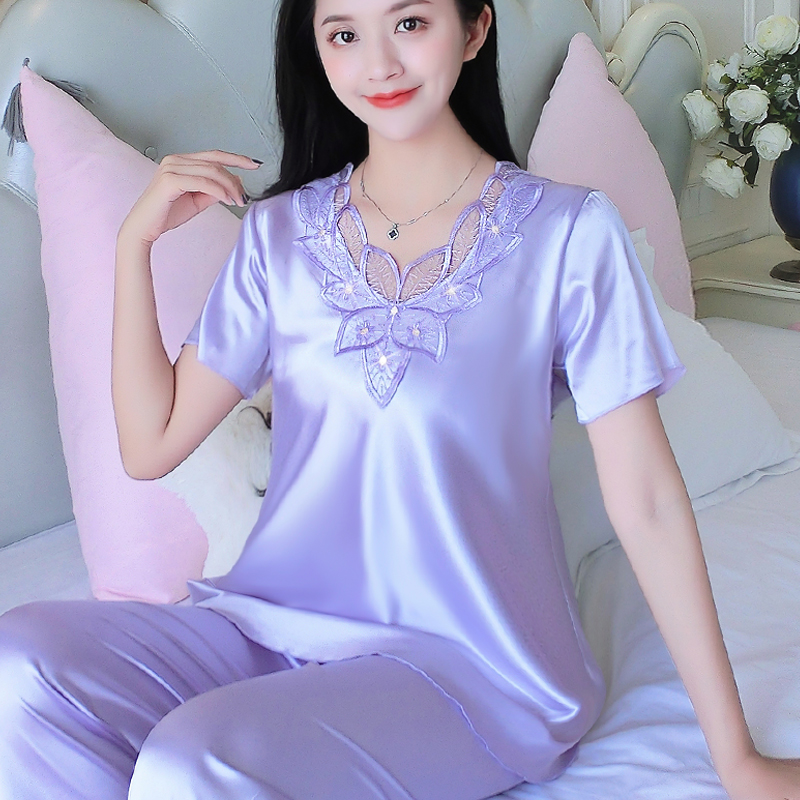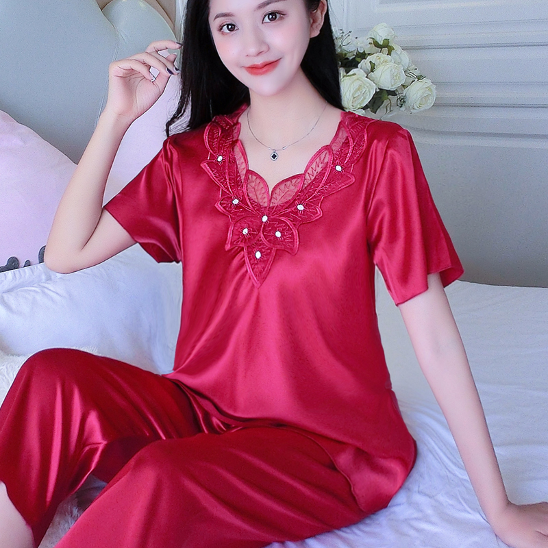 Sleepwear women Summer short sleeves 90% Pants Summer Two Style Suits of Ice Silk Lady Xia's thinner Exterior Wear Home Clothing