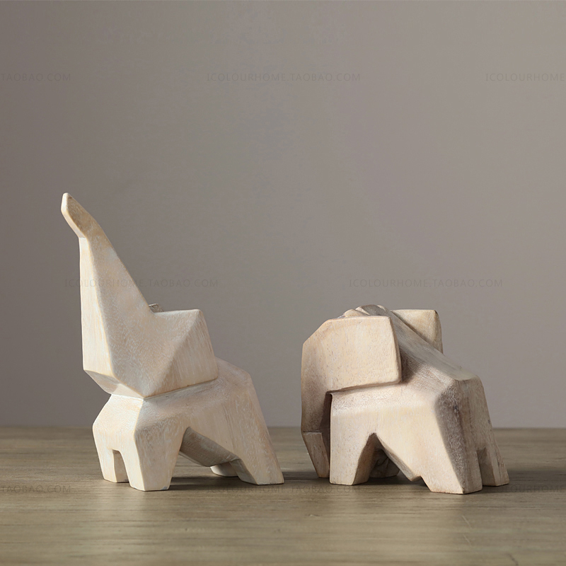 Jia Le home Nordic minimalist Pattaya handmade log carving geometric building blocks wind elephant desktop ornaments
