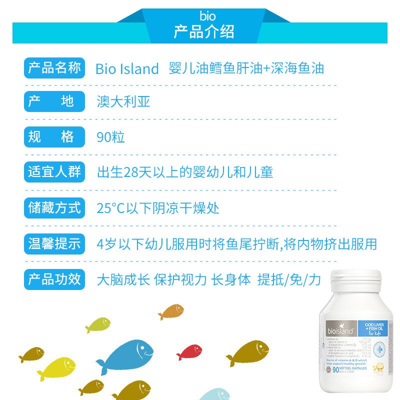 Australia Bio island baby cod liver oil cod liver oil DHA VD Children Baby 90 calcium supplement