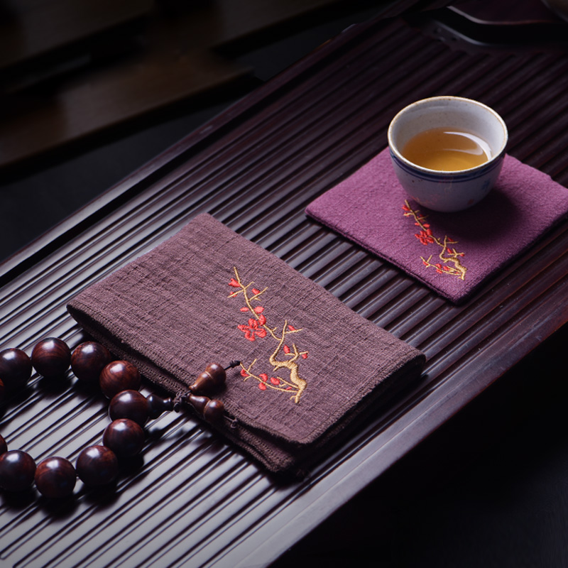 Red plum three-color red plum three-color tea towel red plum four-color coaster red plum embroidery-light coffee red plum embroidery-dark blue red plum embroidery-dark green