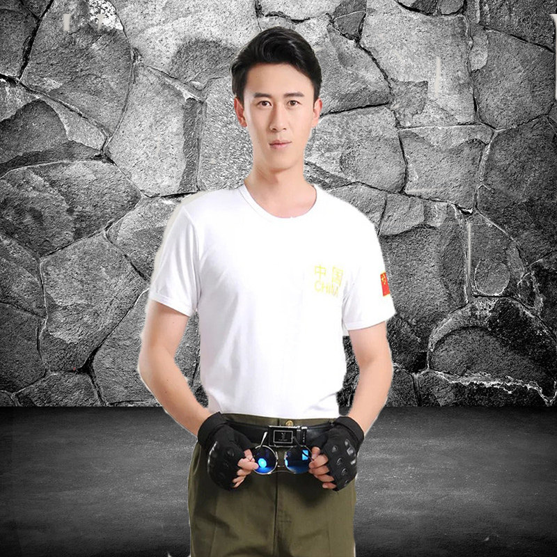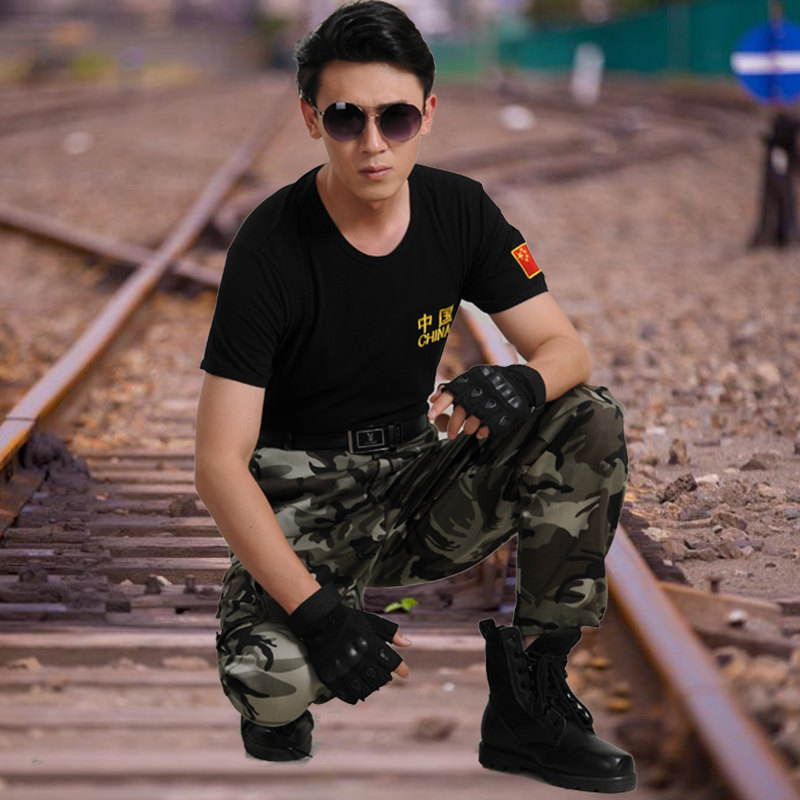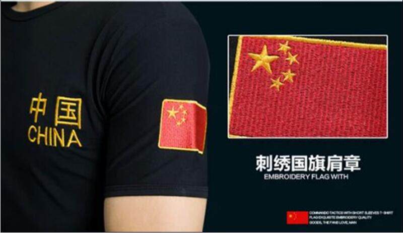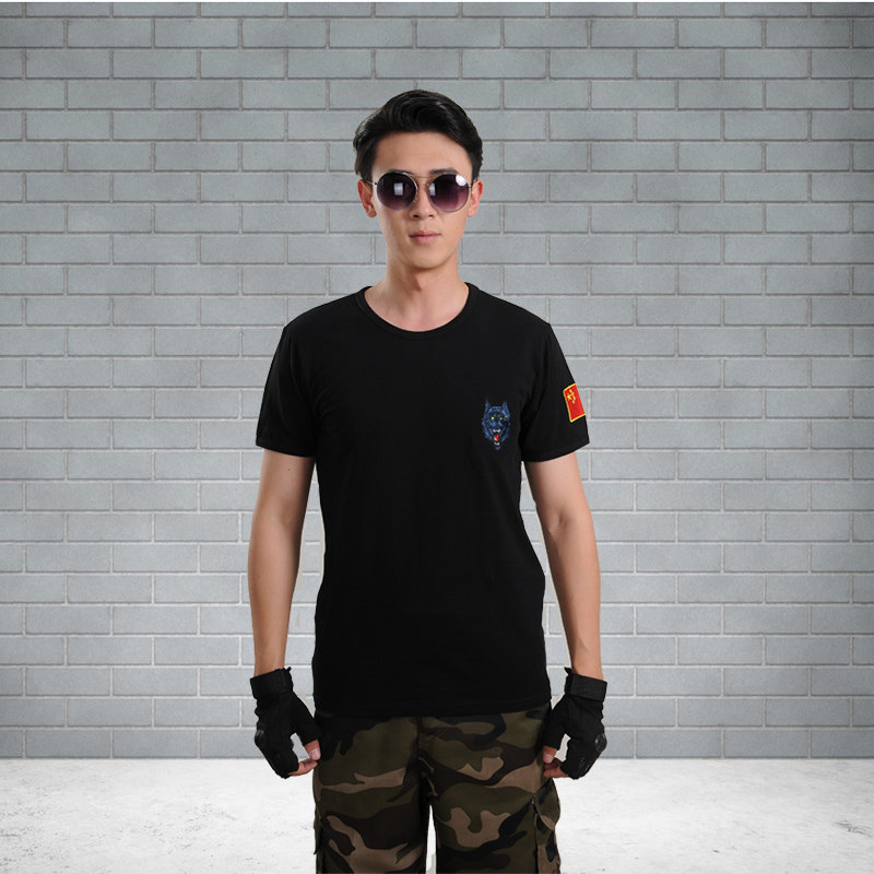Summer Embroidered Chinese Wolf Head Round Neck Black Short Sleeve T-Shirt Cotton Tight Fitness Training Camouflage Half Sleeve T-Shirt
