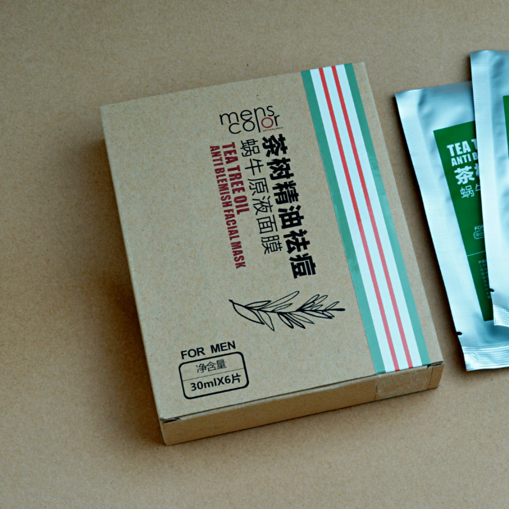Vanco Tea Tree Men's Acne-Removing Snail Original Solution Single-Piece Mask Anti-acne Light Printing Moisturizing Oil Control Pore Shrinking Skin Care
