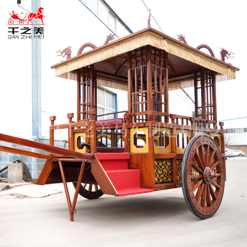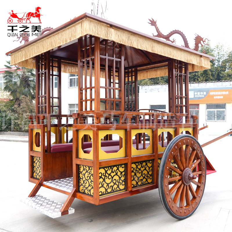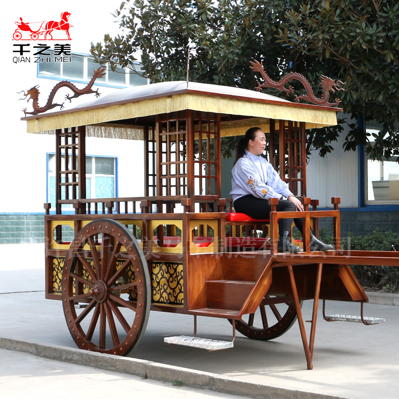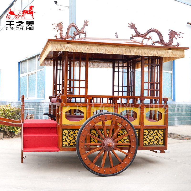 Antique Chinese style ancient horse-drawn carriage wrought iron imitation wood vintage horse-drawn carriage celebration parade sightseeing car museum displays props