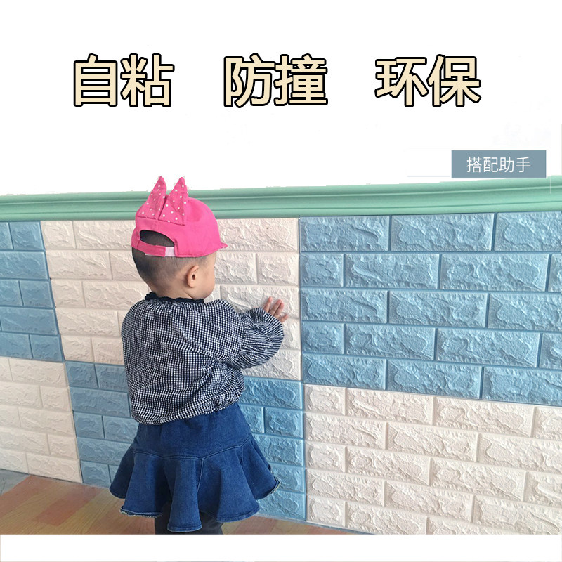 Child Crashworthiness Wall Cushion Thickened Soft Bag Nursery Solid Wall Patch Bedside Baby Protective Wall Stickproof Bar Post Stick