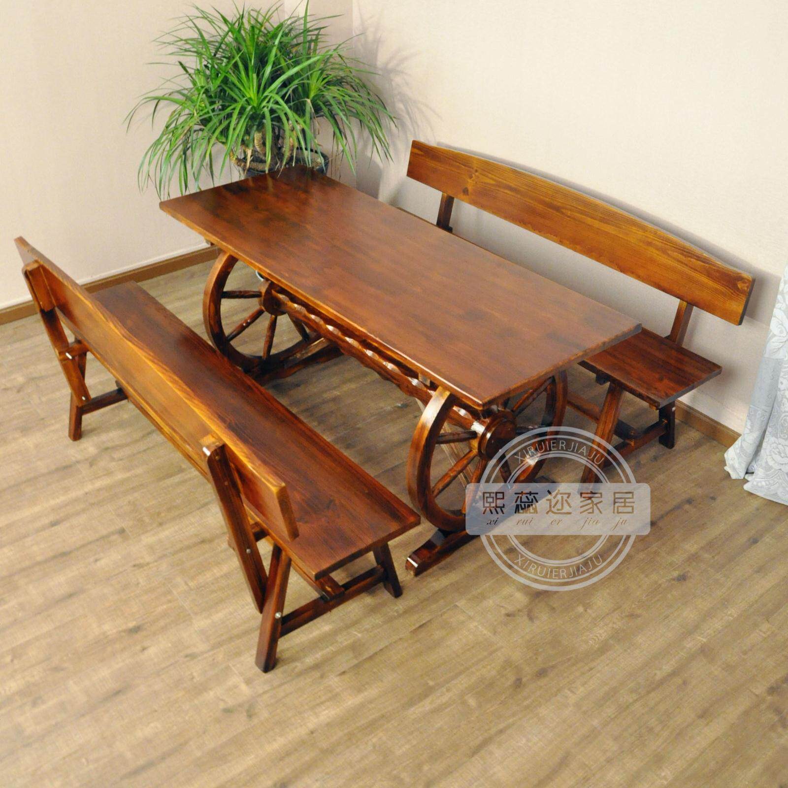 Xirui you anti-corrosion carbonized solid wood outdoor bar courtyard balcony leisure double wheel table and chair combination kit