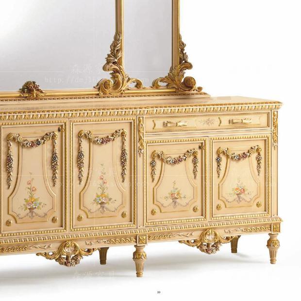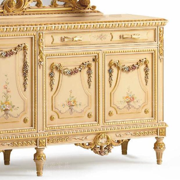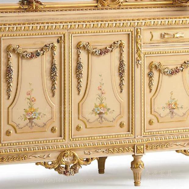 Eurostyle Dining Cabinet Villa Living Room Solid Wood Lockers Hand-colored Drawing Decorated Cupboard Kitchen Bowls Tray Cabinet Tea Water Cabinet