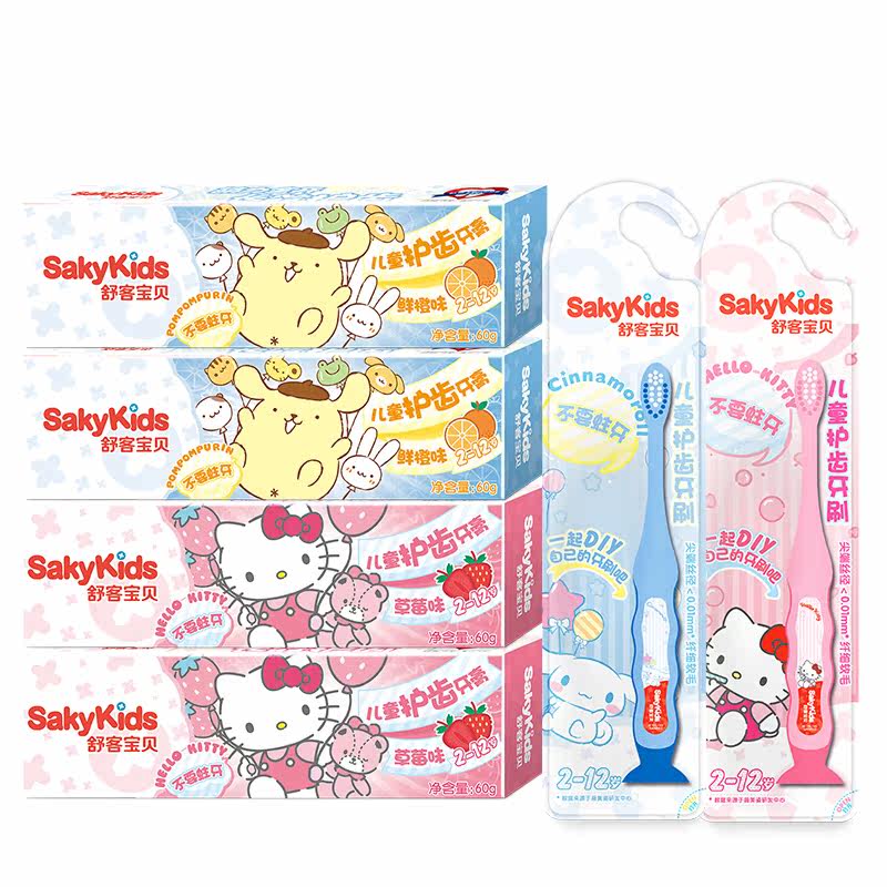 Shuke Shuke children's toothpaste * 4 toothbrush * 2 anti-moth can swallow less fluoride 2-3-4-5-6-7-8-9-12 years old