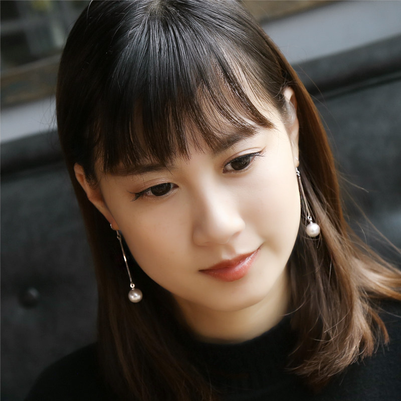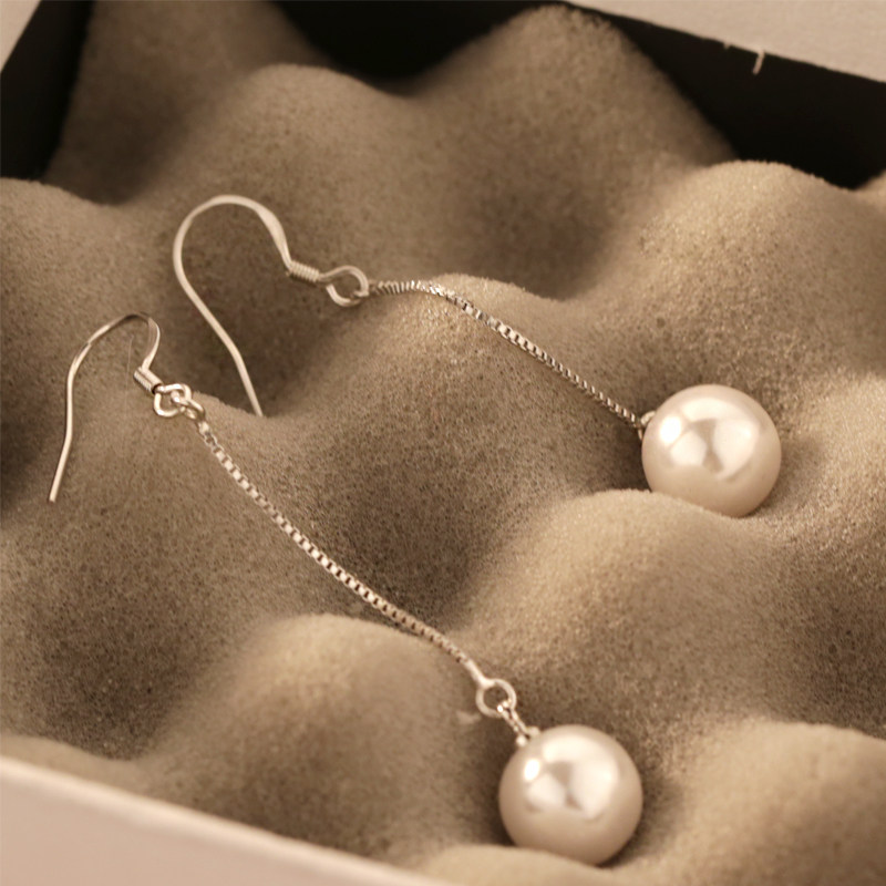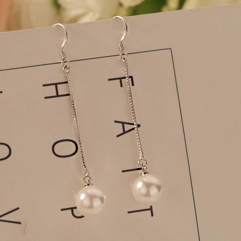 s925 pure silver long version pearl ear hook earrings Temperament Long version Fashion Ear Needle Pendant Earrings Pendant Earrings Trinket