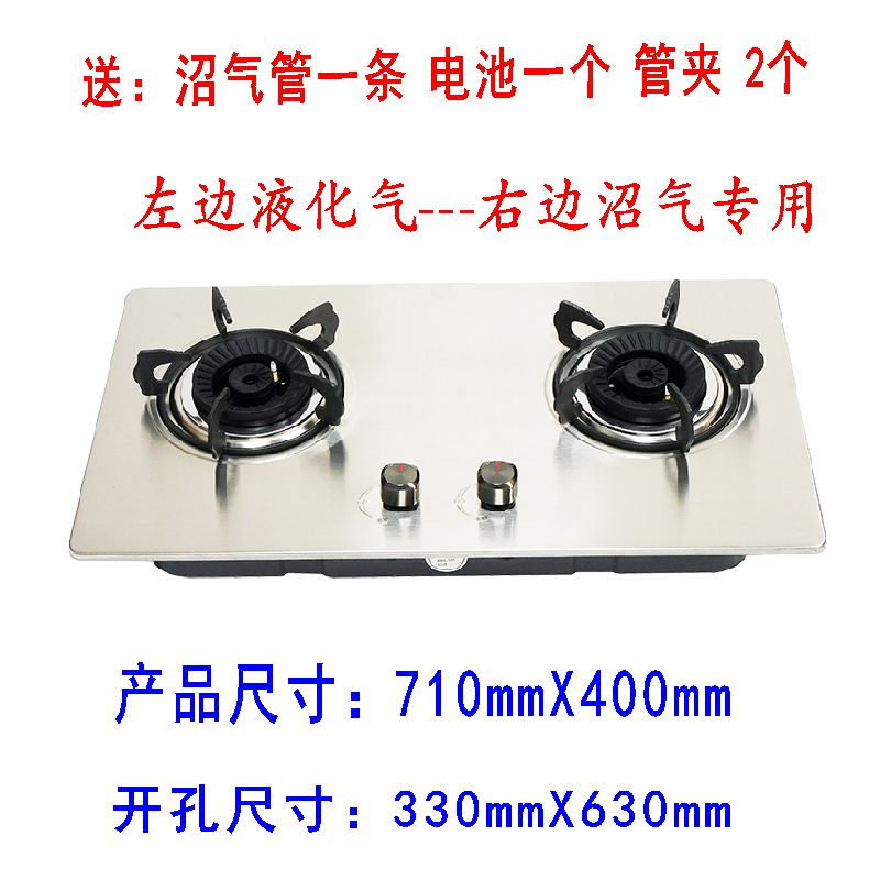 Special price biogas electronic double-mouth gas stove stainless steel electronic biogas double mouth gas stove (Cindy plus thick type stainless steel 666 pulse biogas double mouth gas stove Thickened Biogas Foci Impulse ignition (Cindy double mouth tile