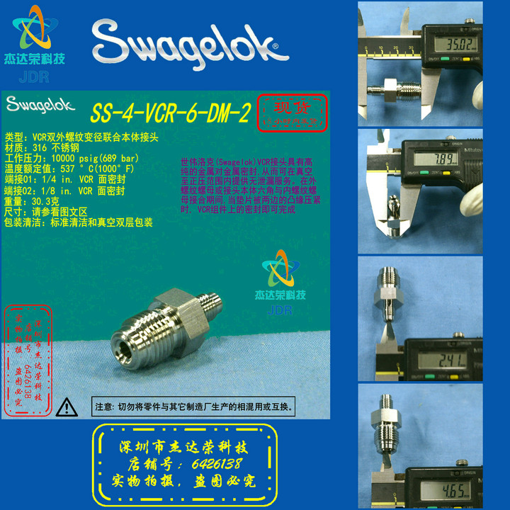 (SS-4-VCR-6-DM-2) Swagelok Sevelock face seal variable diameter 1 4inX1 8inVCR