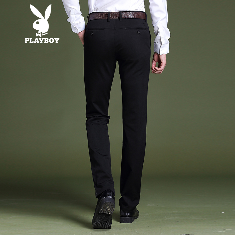 Playboy Men's Casual Pants Autumn and Winter New Slim Business Dress Long Pants Korean Style Straight Trousers Plus Velvet