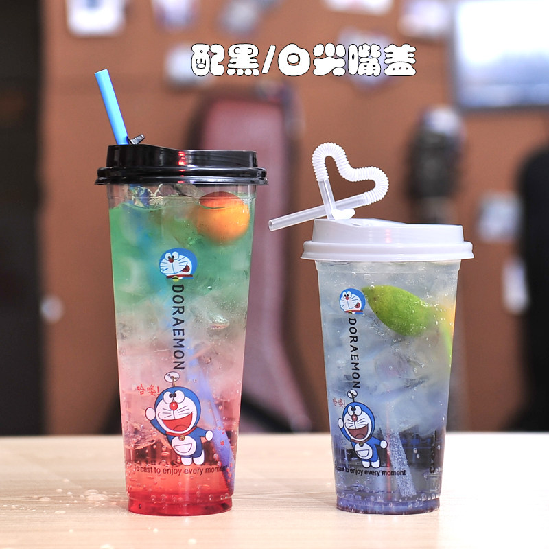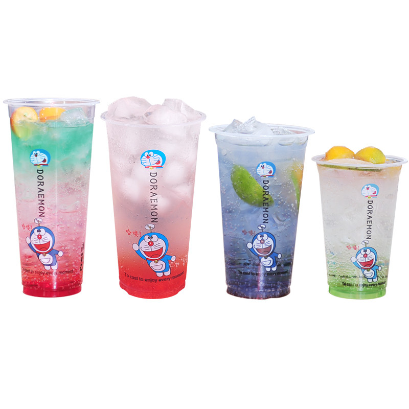 700ml disposable plastic coffee milk tea cup cold drink cola thickened egg waffle transparent 90 caliber with lid
