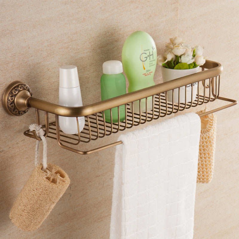 Antique shelf copper European-style bathroom pendant Makeup Room Retro Monolayer Wall-mounted Bathroom Golden Black 50