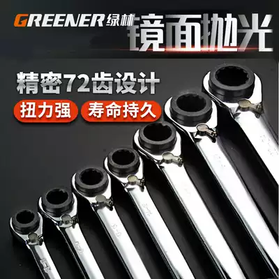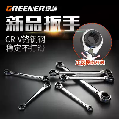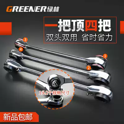 Green forest double-head ratchet wrench four-purpose quick dual-purpose wrench two-way plum blossom wrench set auto repair hardware tools