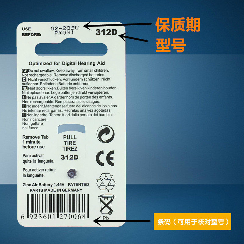 Germany imported Digihear Hearing Aid booster battery 312D 1 45V Zinc Air