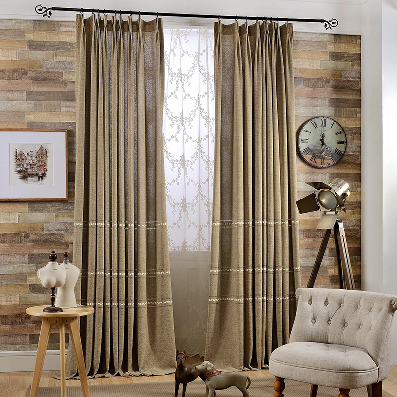 Modern new Chinese style study curtain living room bedroom bay window floor-to-ceiling window cotton linen hollow curtain embroidery fabric customization