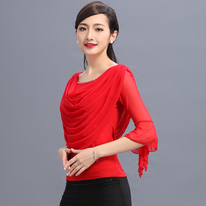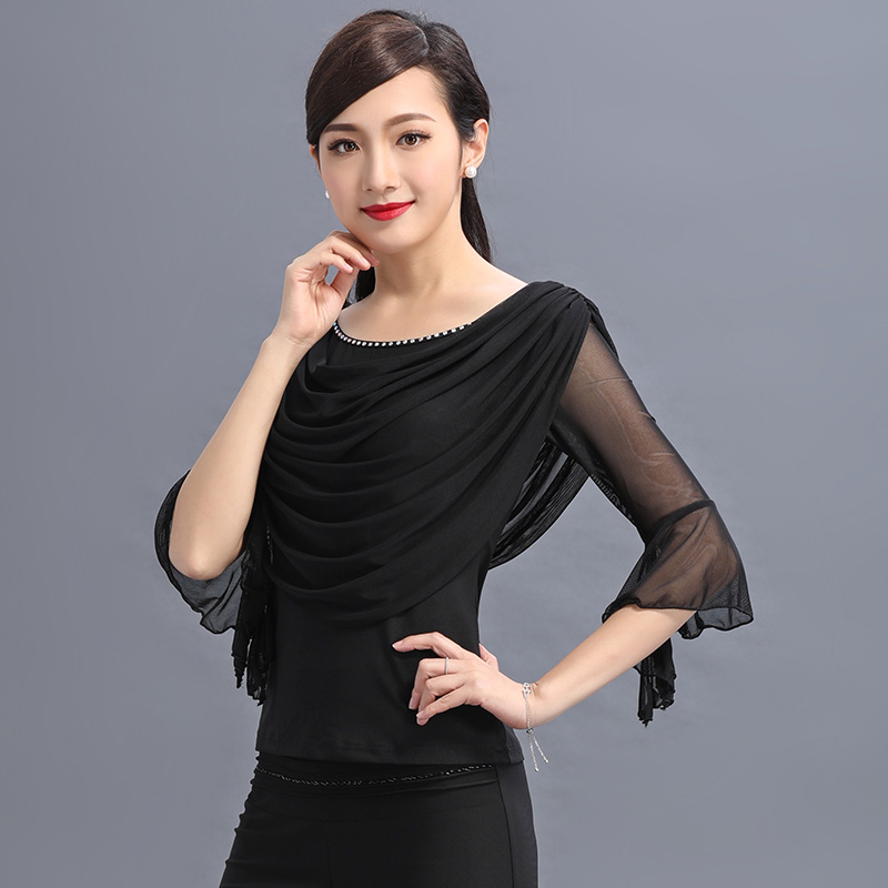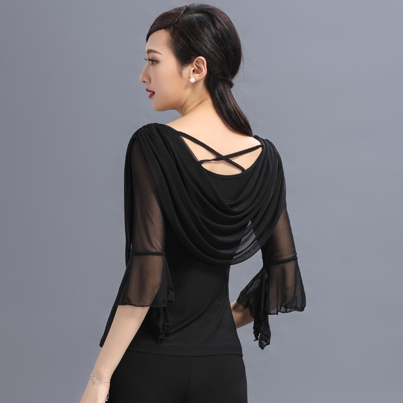 Modern dance top spring new dance middle sleeve adult women's clothing practice national standard friendship Latin dance short sleeve
