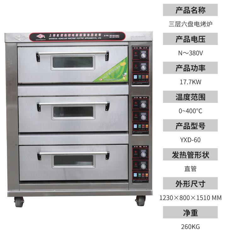 Shanghai Red Union manufacturer's straight underwriters used three layers of six-pan electric hot oven, sweet potato machine cake box oil crisp electric oven