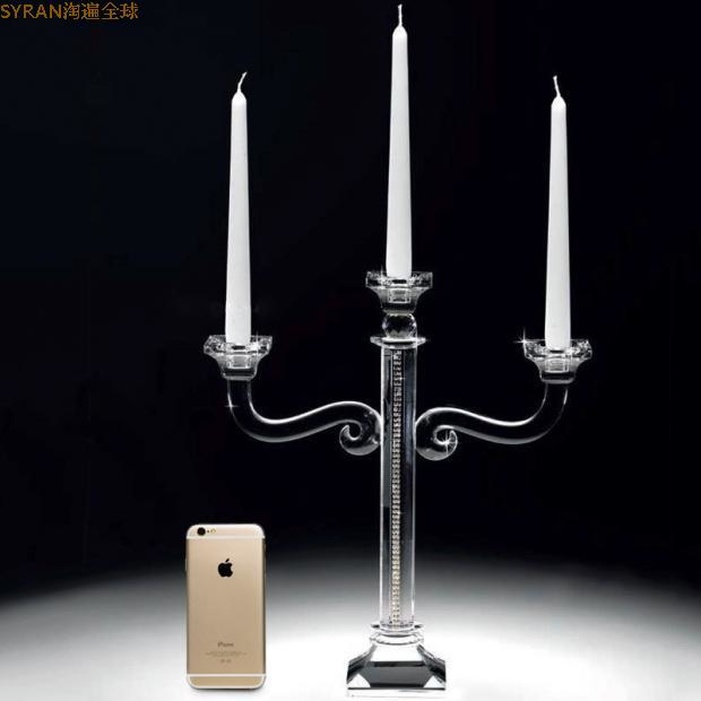 Eurostyle triple head crystal candlesticks Italy imports Ranoldi transparent crystal pendulum decoration process desktop furnishing