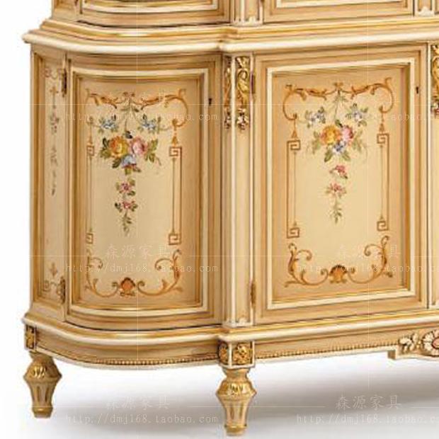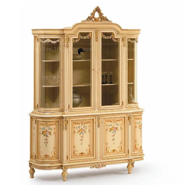 Villa Eurostyle Painted Wine Cabinet Method Type Solid Wood Carved Fancy Wine Cabinet Living-room Glass Display Case cabinet Custom