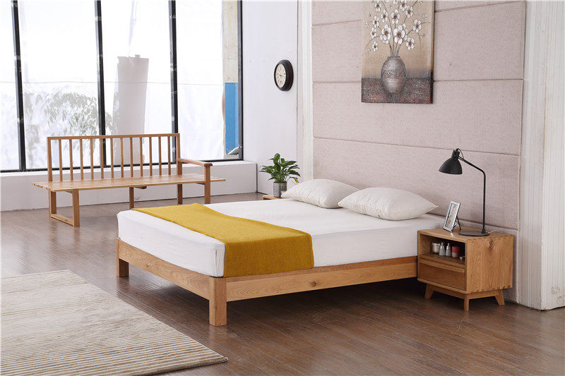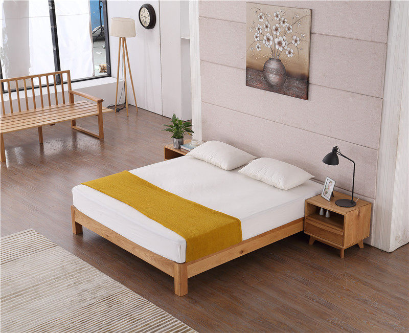Happy Temai American White Oak Bedroom Home Innate Solid Wood Bed Double Bed Hotel Bed-FS